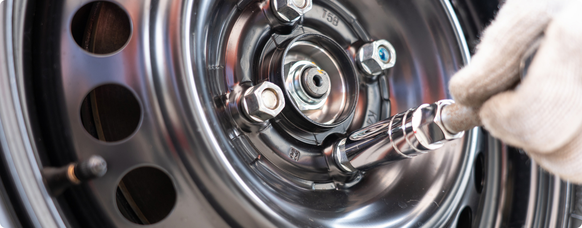 ホイールナットとは、ホイールと車体を固定するための六角形のネジのことです。ホイールナットの取り付けが甘いと走行中にタイヤがグラつくなどの不具合が発生します。