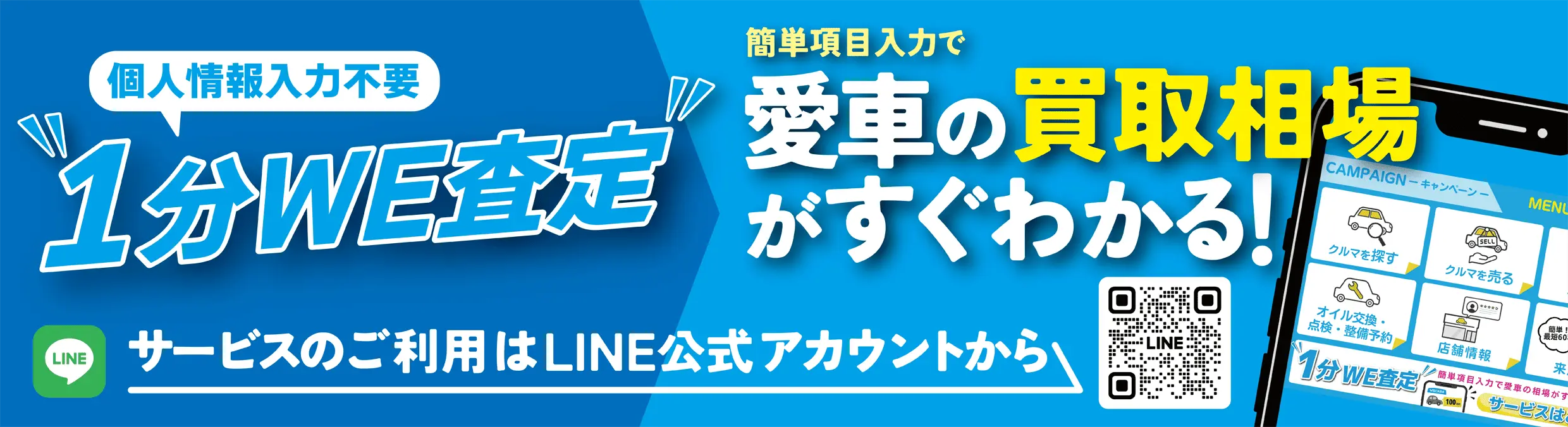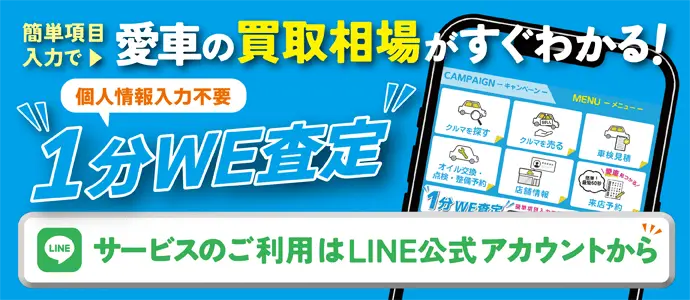 買取強化中 あなたの愛車を高価買取 最短19秒で簡単入力 無料WE!査定