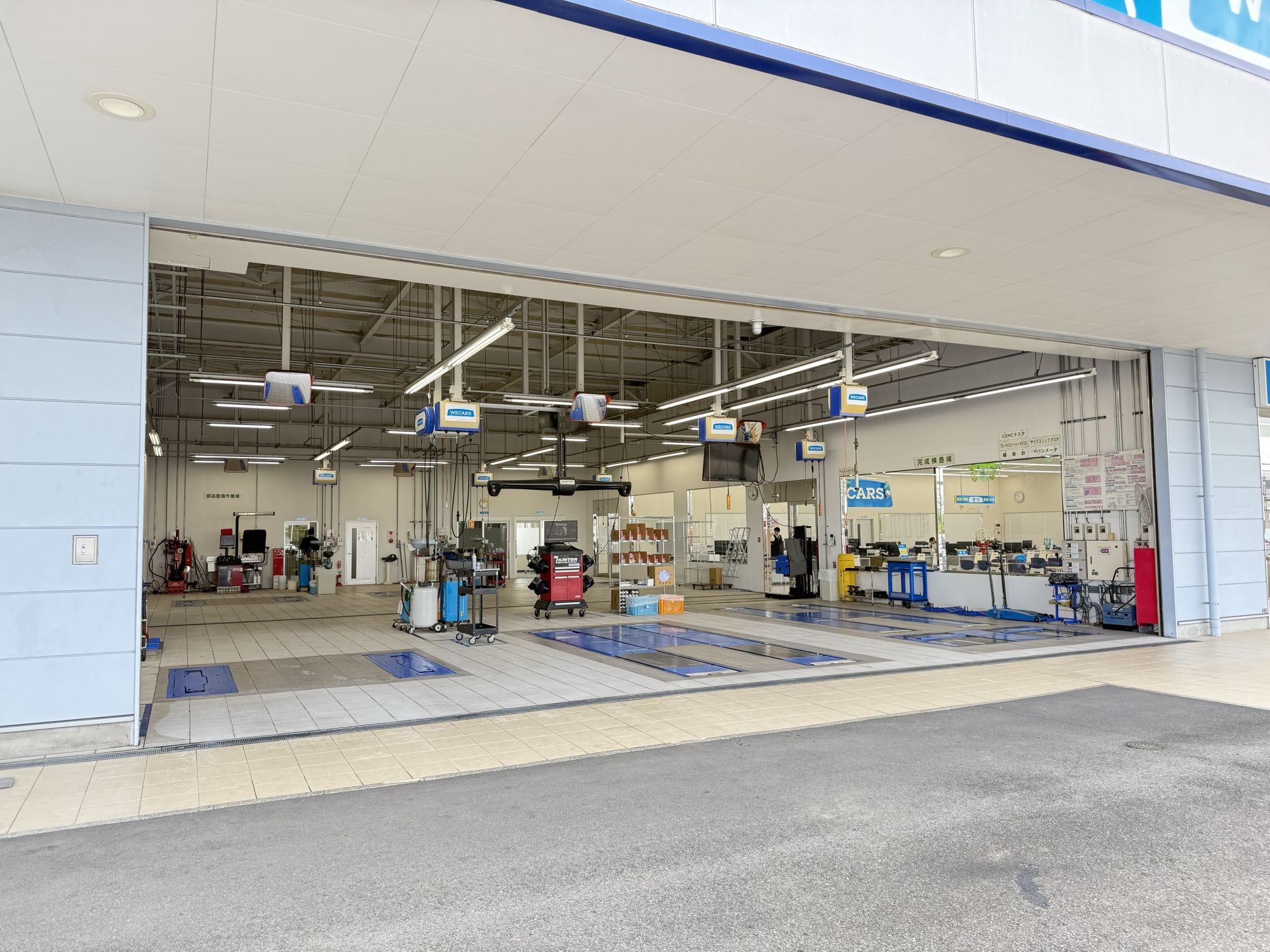 併設している自社整備工場には自動車に付属するカメラやセンサー等の点検や脱着作業を行うことが認められた工場です。そのため、おクルマのお預かりから引き渡しまで、車種やメーカーにとらわれずにワンストップで対応することが可能です。