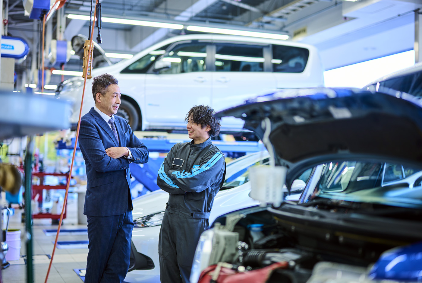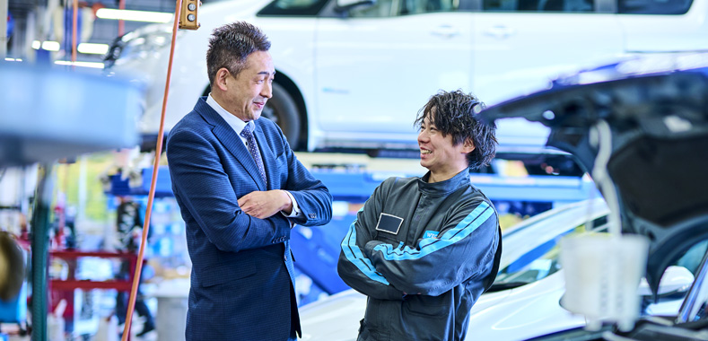 店舗運営では、営業と整備の連携を密にすることが最も重要です。営業・整備という2つの矢をバランスよく融合させる改善を常に行っています。週に一度、現状の課題や改善点について店長とミーティングを実施しています。
