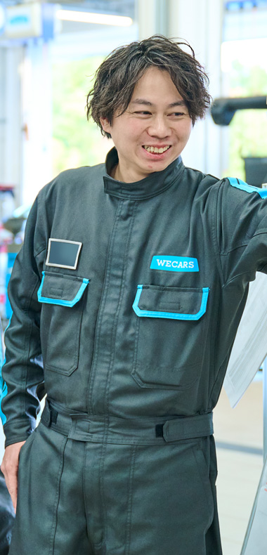 3年ほど勤務した後、私生活の転機もあり、転職を決意しました。当初は買取営業職としての採用でしたが、整備士資格を持っていたこともあり、整備士に転換し、現在は整備の現場で工場長として働いています。